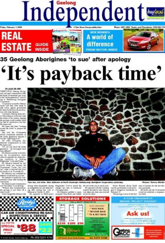 Thirty-five Geelong Aborigines will seek compensation after the Rudd Government says sorry to the “stolen generation”, according to Wathaurong Aboriginal Cooperative.
