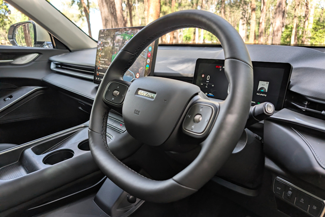 Like the Geely, a small 10.25-inch screen sits above the steering column and serves as the instrument cluster.
