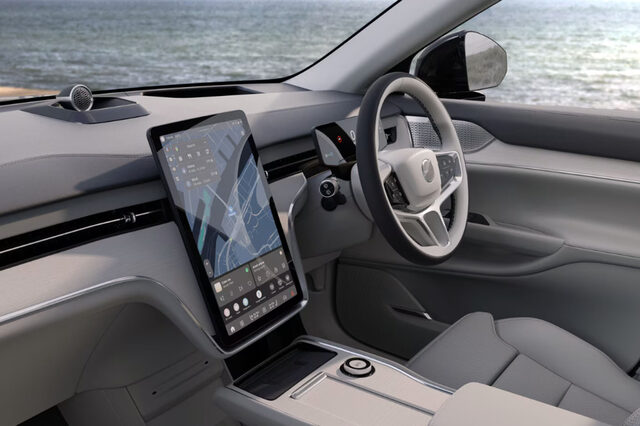 Ahead of the driver is a slim 9.0-inch digital instrument binnacle that is shared with a number of Geely Auto group models, though the EX90’s one is very close in look and feel to that of the Polestar 3 and 4. It offers a flat and simple readout of key info, and has a couple of different views including a Google Maps view.